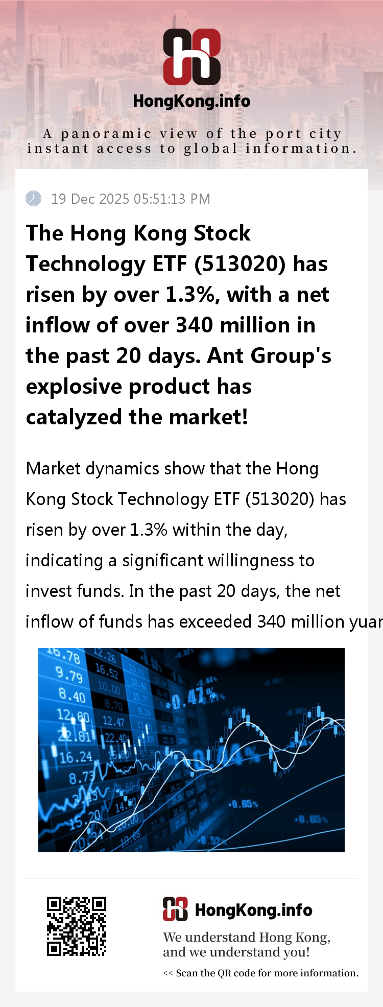 Market dynamics show that the Hong Kong Stock Technology ETF (513020) has risen by over 1.3% within the day, indicating a significant willingness to invest funds. In the past 20 days, the net inflow of funds has exceeded 340 million yuan. On the news front, Ant Group's AI health app "Ant Afu" has become a market focus. After its release on December 15th, the app's download volume quickly climbed, and on the 16th, it entered the third place on the Apple App Chart. As of now, the monthly active user base of "Ant Afu" has exceeded 15 million, with an average daily response of over 5 million health-related questions from users, making it a phenomenal product in the AI vertical field.