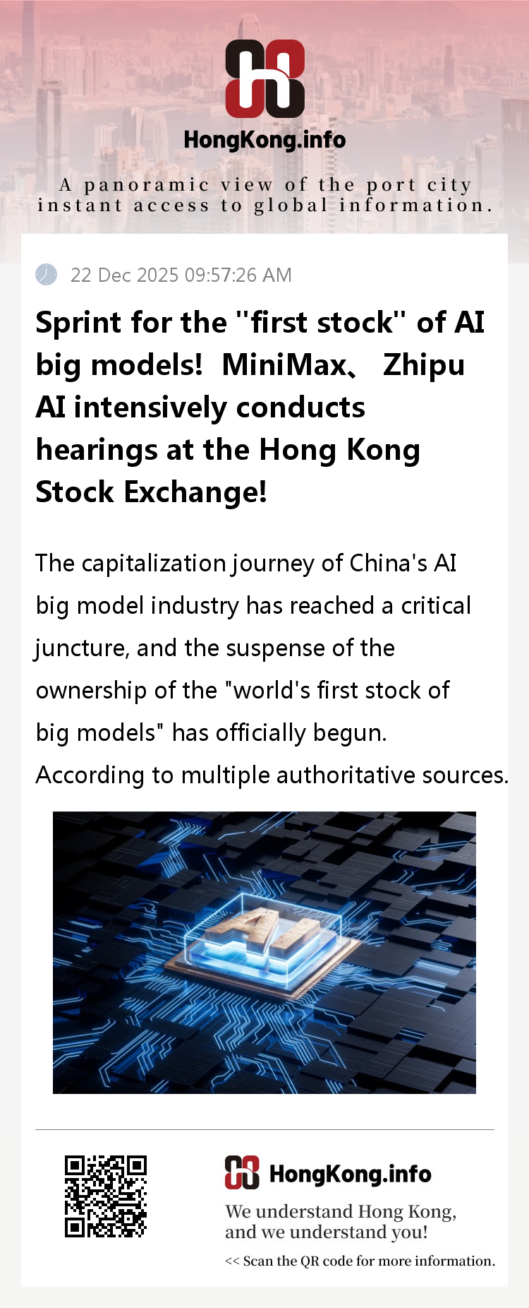 The capitalization journey of China's AI big model industry has reached a critical juncture, and the suspense of the ownership of the "world's first stock of big models" has officially begun. According to multiple authoritative sources, two major AI unicorn companies in China, MiniMax and Zhipu AI, have successively passed the listing hearing on the Hong Kong Stock Exchange this week. Zhipu AI participated in the hearing on December 16th, while MiniMax completed the hearing process on December 17th. Both companies have obtained overseas listing registration from the China Securities Regulatory Commission in advance. If the subsequent itinerary goes smoothly, the two cases will become the fastest cases of mainland enterprises going public in Hong Kong since the implementation of the "reporting system" new policy, and are expected to officially enter the Hong Kong stock market in early 2026.