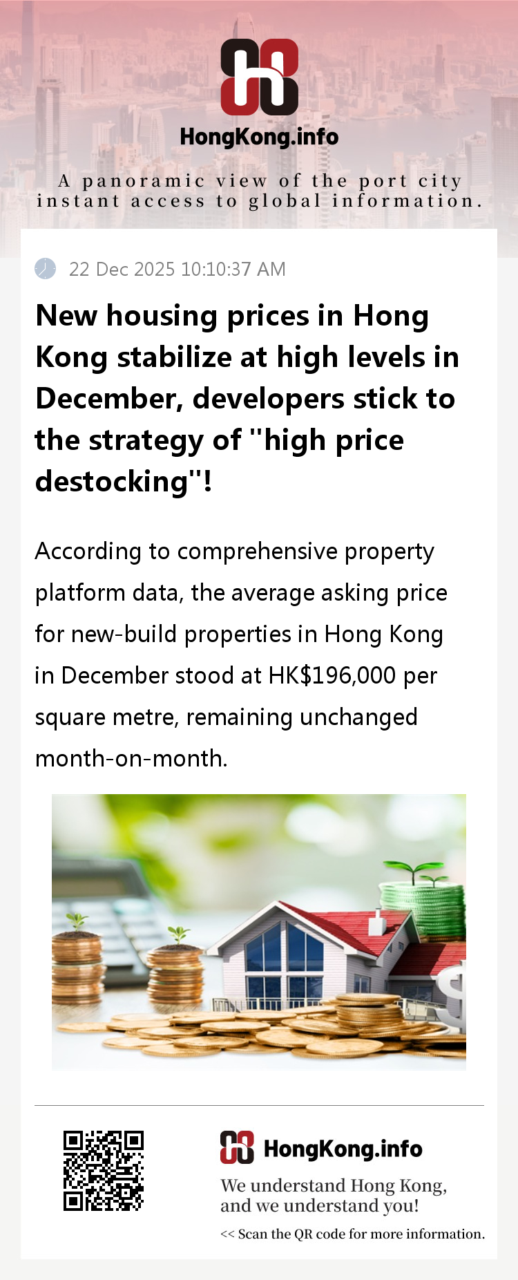 According to comprehensive property platform data, the average asking price for new-build properties in Hong Kong in December stood at HK$196,000 per square metre, remaining unchanged month-on-month. Among the top ten most sought-after developments, only BlueCoast openly quoted HK$240,000 per square metre, with prices for the remaining projects remaining stable. This trend underscores Hong Kong developers' core strategy of ‘depleting inventory at premium prices’ rather than indiscriminate price hikes, echoing the cautious approach seen in Vanke's suspension of sales for Tai Po's ‘Lianhao Phase II’.