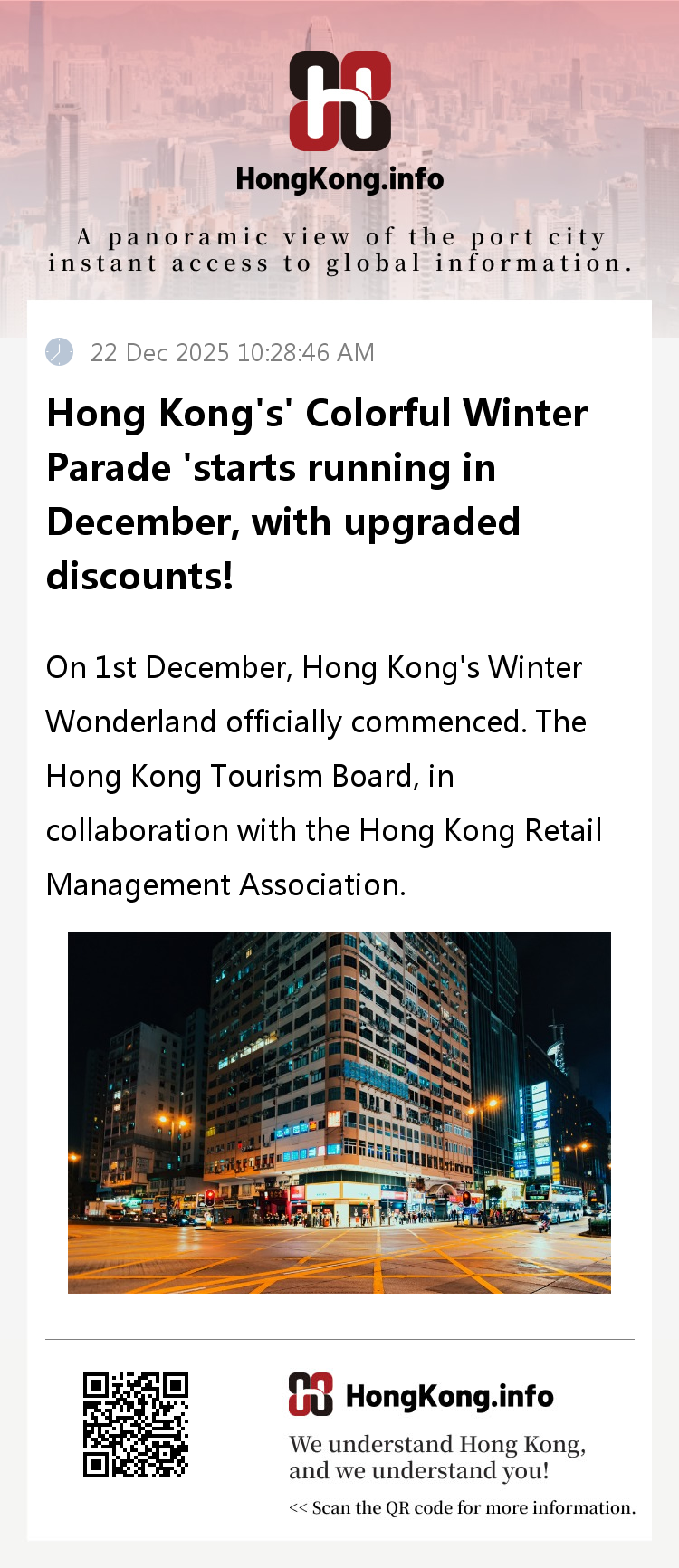 As Hong Kong's signature winter cultural and tourism event, this upgraded Winter Wonderland focuses on ‘omnishopper discount coverage’ and ‘seasonal synergy enhancement’. Through deep collaboration with the Retail Management Association, the HKTB has integrated Hong Kong's core cultural tourism and commercial resources. This ensures promotions extend beyond single shopping domains to encompass the entire visitor journey – from transport upon arrival, to sightseeing and distinctive dining experiences, through to festive shopping, all offering exclusive benefits. This comprehensive coverage model not only reduces travellers' expenditure but also stimulates multi-sector consumption growth with greater precision.