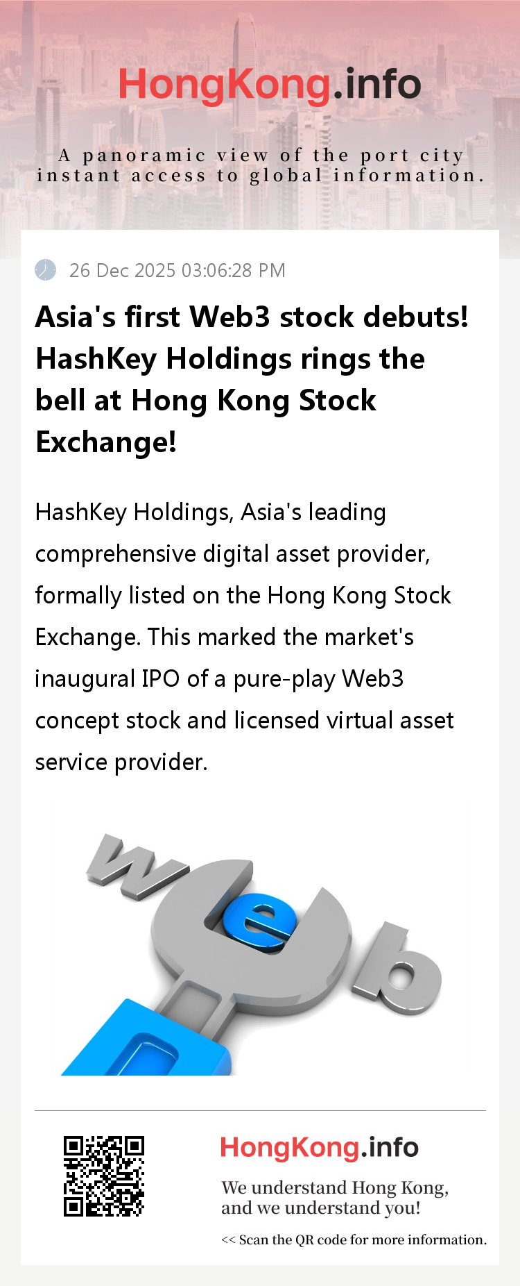 Looking ahead, under HashKey's leadership and bolstered by Hong Kong's tokenisation policy implementation, the city's Web3 sector is poised for a developmental surge. Nevertheless, challenges remain in technological innovation and regulatory alignment. For HashKey, the listing marks a new beginning, requiring capital to drive technological breakthroughs and ecosystem expansion. For Hong Kong, optimising the regulatory framework, balancing risk and innovation, and fostering integration between Web3 and traditional finance will be essential to cement its position as a global digital financial hub.