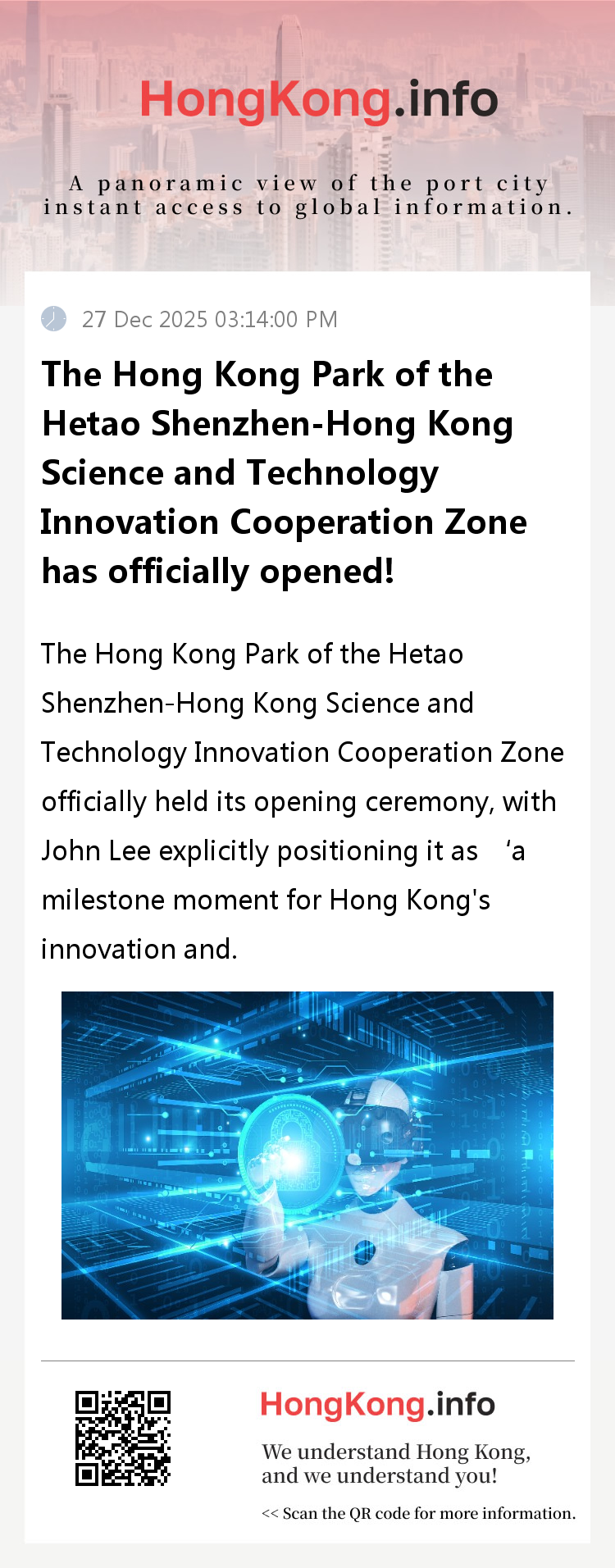 As the core platform for cross-border science and technology innovation cooperation between Shenzhen and Hong Kong, the official launch of this park will further break down barriers to the flow of innovation resources between the two regions, injecting robust momentum into the development of the Guangdong-Hong Kong-Macao Greater Bay Area as an international science and technology innovation hub.