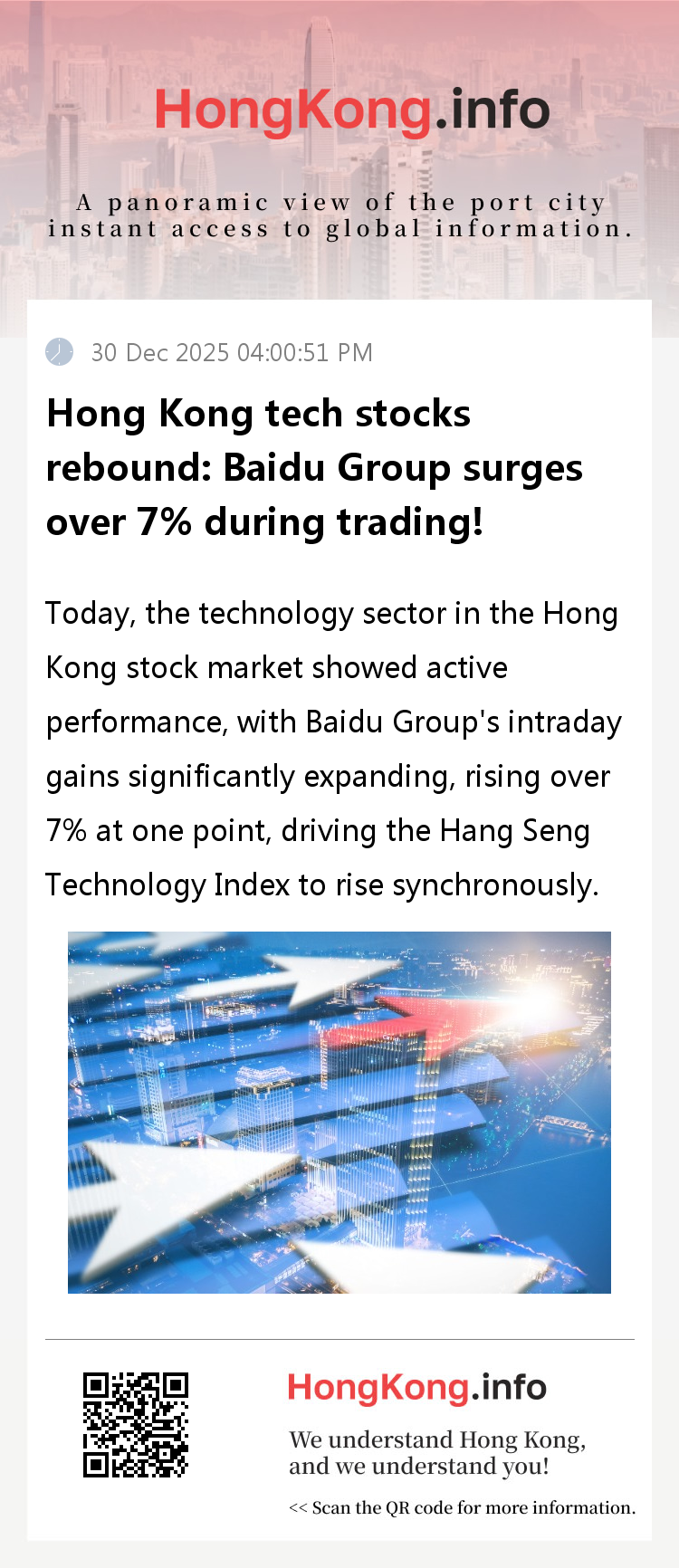 From the perspective of the market environment, the overall sentiment of the Hong Kong stock market has been positive recently, with continuous inflows of funds from the south into high-quality technology stocks, providing support for the stock prices of leading companies such as Baidu Group. In addition, the expectation of loose liquidity in the international market has increased, creating favorable conditions for the rebound of the Hong Kong technology sector. For investors, the phased recovery of the technology sector is worth paying attention to, but it needs to be rationally planned based on factors such as the progress of the company's core business and the competitive landscape of the industry, to avoid blindly following the trend.