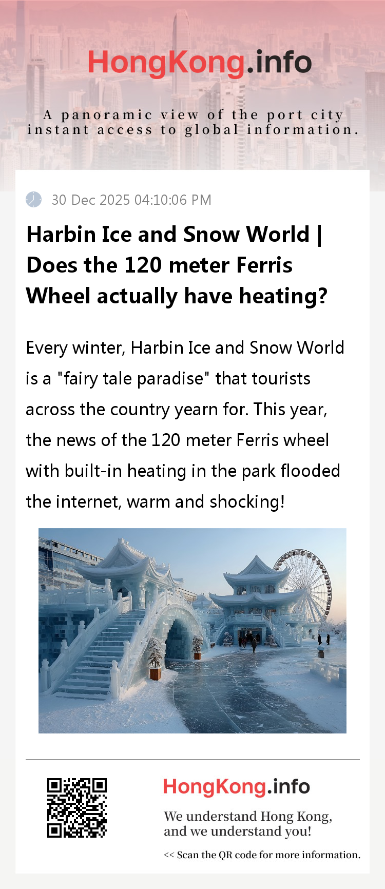 I: 120 meter Warm Winter Ferris Wheel, enjoy the ice scenery from the clouds without freezing your hands