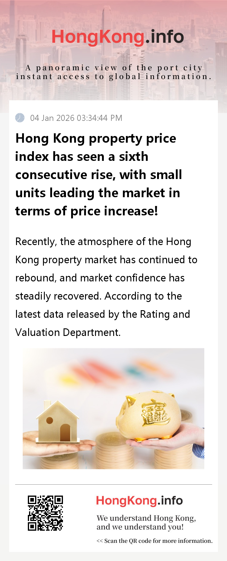 The sixth consecutive rise in the property price index this time is an important signal that Hong Kong's property market is gradually shifting from an adjustment period to a recovery period. Although there is still a gap compared to historical highs, the continuous narrowing of the decline and the trend of small units leading the way reflect the gradual improvement of market fundamentals and lay a foundation for the stable operation of the property market in the future. For home buyers, the recovery of the property market coupled with the high cost-effectiveness of small units may usher in a relatively friendly window for entering the market; for the overall market, the continuous recovery trend is expected to further stimulate transaction activity and promote the gradual return of Hong Kong's property market to a stable operating track.