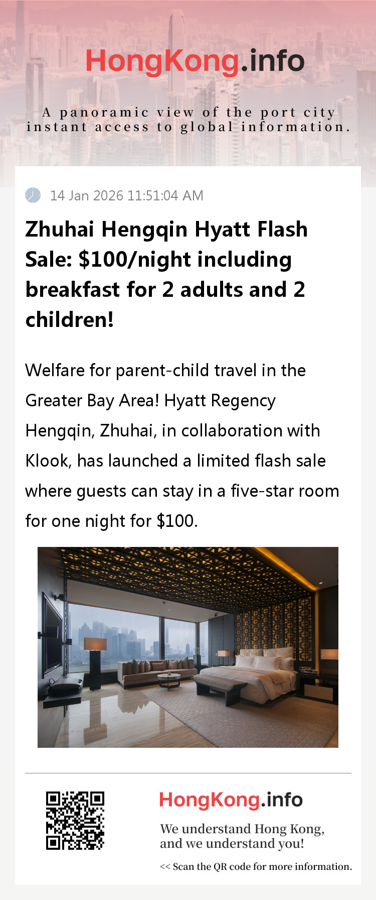 What's even more considerate is that the package includes round-trip port shuttle services. For families arriving from Hong Kong, Macau or other regions via ports, there's no need to worry about planning transportation throughout the journey, and they can easily connect to accommodation upon arrival. You should know that the average price of staying at Hyatt Regency Hengqin Hotel is much higher than the flash sale price. Now, with just $100, you can get a one-stop package of "accommodation+breakfast+shuttle service", and enjoy the rich amusement resources around you. The cost-effectiveness is unparalleled.