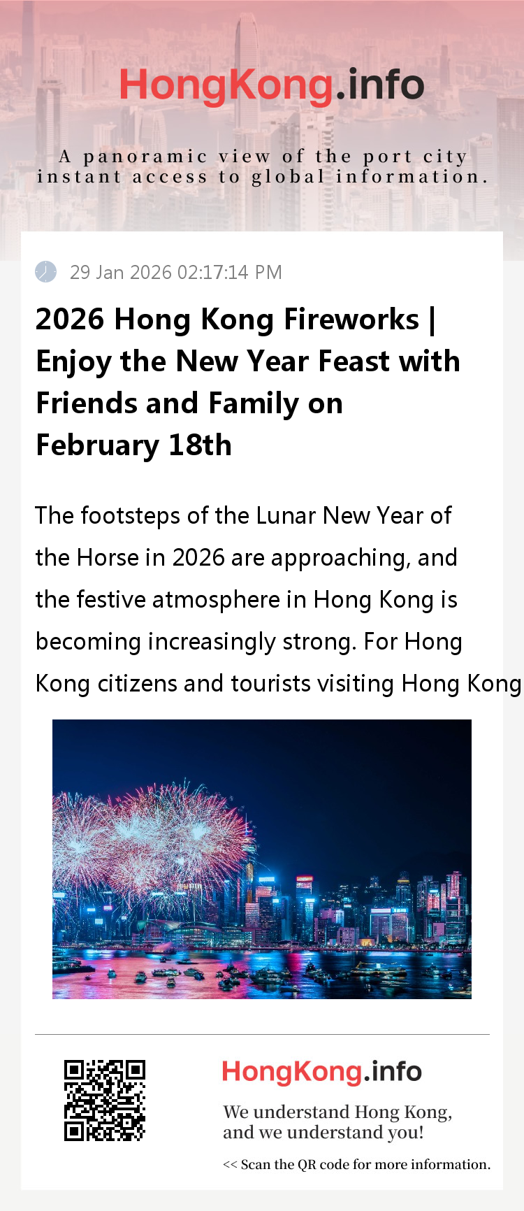 In addition to sitting around a table to enjoy the hot and steaming New Year's Eve dinner, tasting the rice cake with the symbolism of rising step by step, and sharing the rich ingredients of potted dishes, the Victoria Harbour fireworks display on the second day of the Lunar New Year (February 18) is also an unmissable highlight. This stunning visual feast will add a lot of joy and warmth to the New Year of the Horse.