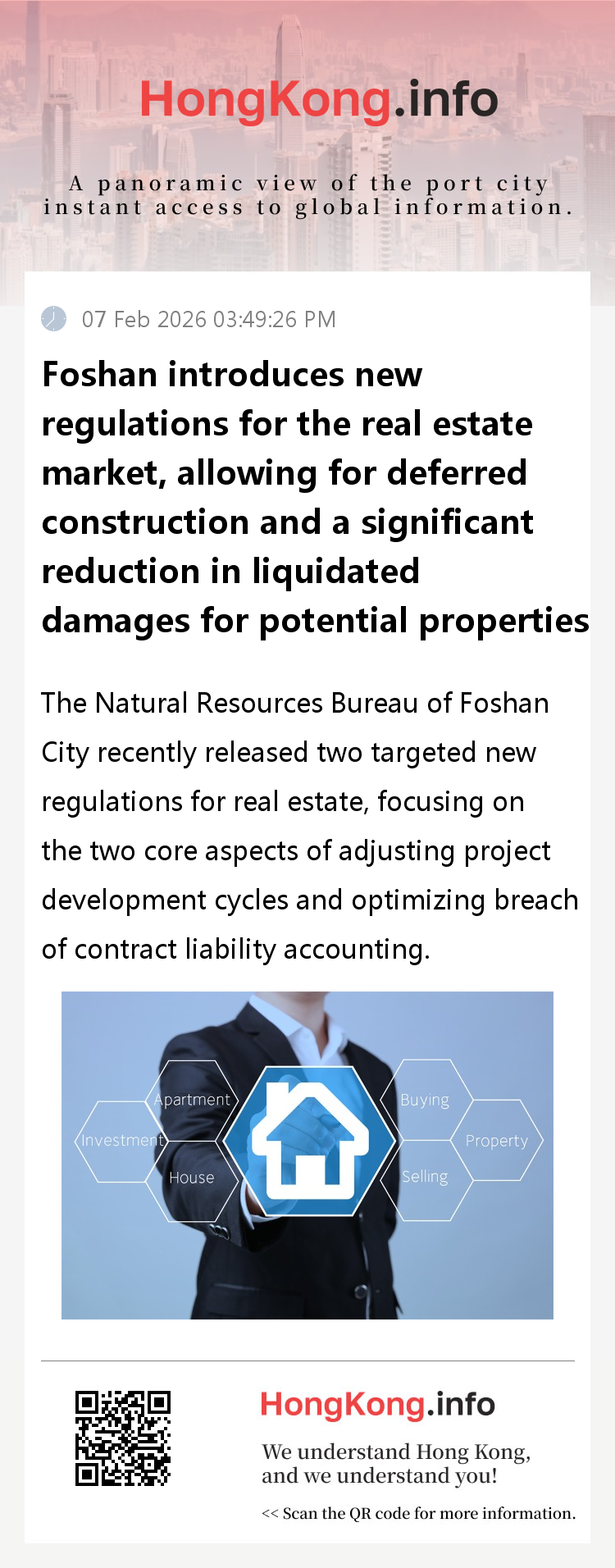 The intensive introduction of two new regulations this time is not a single release of policy benefits, but an important measure taken by Foshan to accurately alleviate the difficulties faced by real estate enterprises in combination with the current development of the real estate market. Behind it is the city's firm determination to optimize real estate supply and stabilize market expectations. Based on the performance of the Foshan real estate market in 2025, the supply of new houses in the city has decreased year-on-year, and there is still pressure to reduce inventory. Some real estate companies are facing problems such as tight capital turnover and difficulties in fulfilling project deadlines. The combination policy of delaying construction and reducing liquidated damages targets the pain points of real estate companies, which not only avoids some projects from stagnating due to excessive performance pressure, but also effectively revitalizes existing land and project resources, and promotes the orderly development of real estate projects.