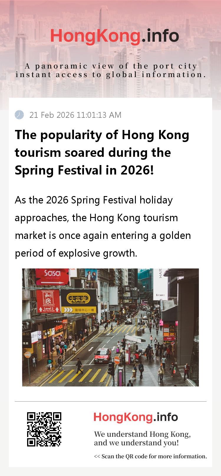It is reported that this Spring Festival holiday is divided into two phases, namely from January 29th to February 4th and from February 15th to February 23rd. The combination of the double holiday and abundant festive activities has made Hong Kong one of the top destinations for mainland tourists during the Spring Festival travel rush. All core tourism indicators have shown a steady upward trend, highlighting the robust vitality of the market recovery.