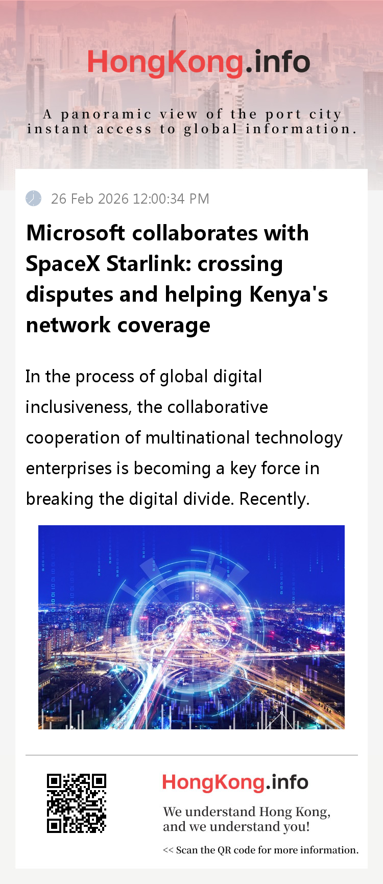 From the perspective of cooperation value, the partnership between Microsoft and Starlink not only brings practical network convenience to Kenya, but also builds a new digital universal benefit model of "technology enterprise+local ecosystem", providing a model for other developing countries around the world to solve network coverage problems. On the one hand, Starlink's low Earth orbit satellite technology has the advantages of fast deployment, wide coverage, and strong anti-interference ability, which can quickly fill the gaps that ground networks cannot reach; On the other hand, Microsoft, with its advantages in cloud computing and digital ecosystem building, can deeply integrate network connectivity with local livelihood needs, making the network not only a "connection tool", but also an "empowerment carrier" to promote the upgrading of education, healthcare, employment and other fields, truly achieving "network connectivity and people's livelihood prosperity".