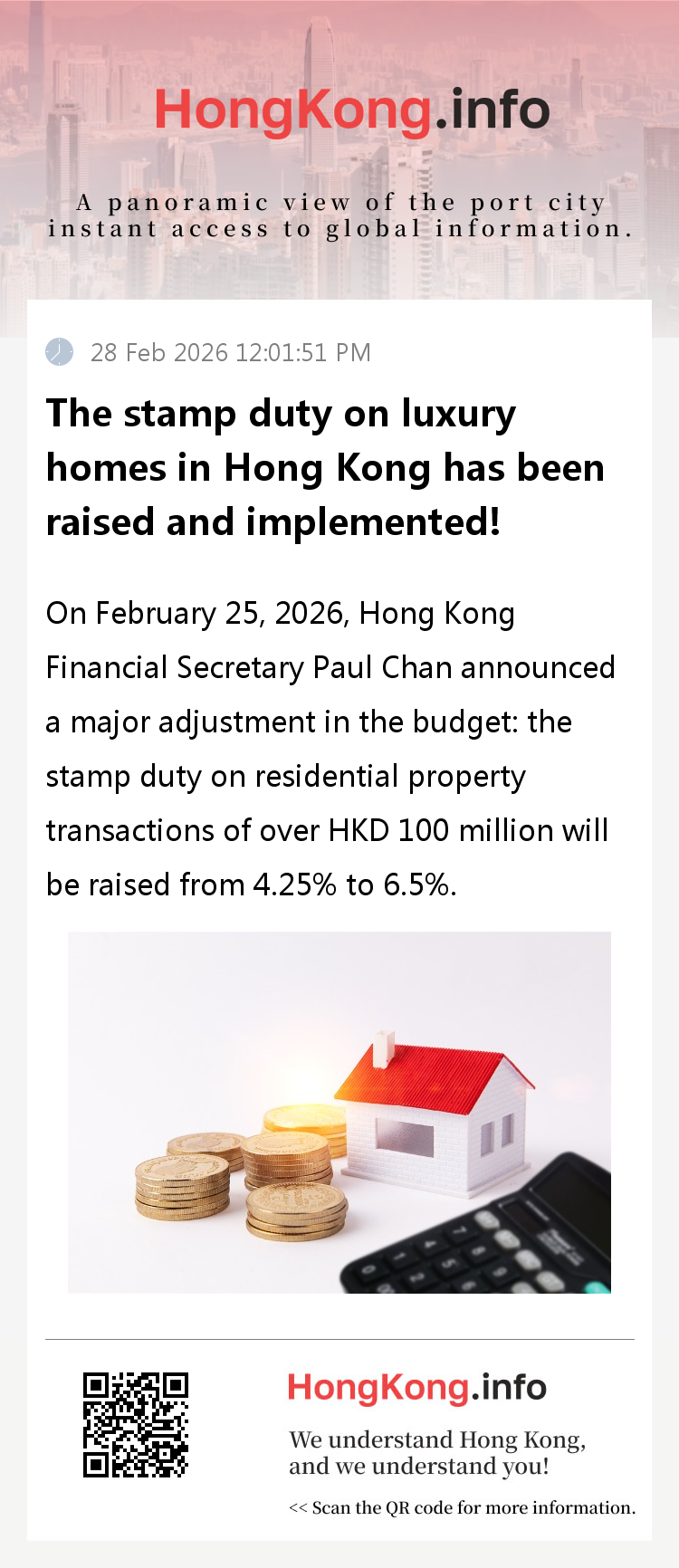 The measure will take retrospective effect on February 26th, and luxury homes sold on or after February 26th will be subject to the new tax rate. This adjustment only affects about 0.3% of residential transactions, with limited impact on the overall real estate market pattern. The core goal is to enrich the finance, with an expected annual increase of about HKD 1 billion in revenue, balancing fairness and regulatory rationality.