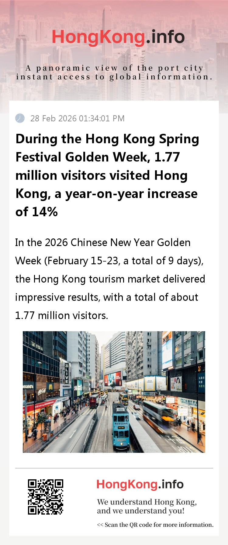 The good performance of this Spring Festival Golden Week confirms the sustained recovery trend of the Hong Kong tourism market. With the continuous optimization of tourism products and improvement of regulatory services in Hong Kong, coupled with convenient cross-border transportation advantages, it is expected to continue attracting more domestic and foreign tourists in the future, further consolidating its dual position as an international financial center and tourism hub.