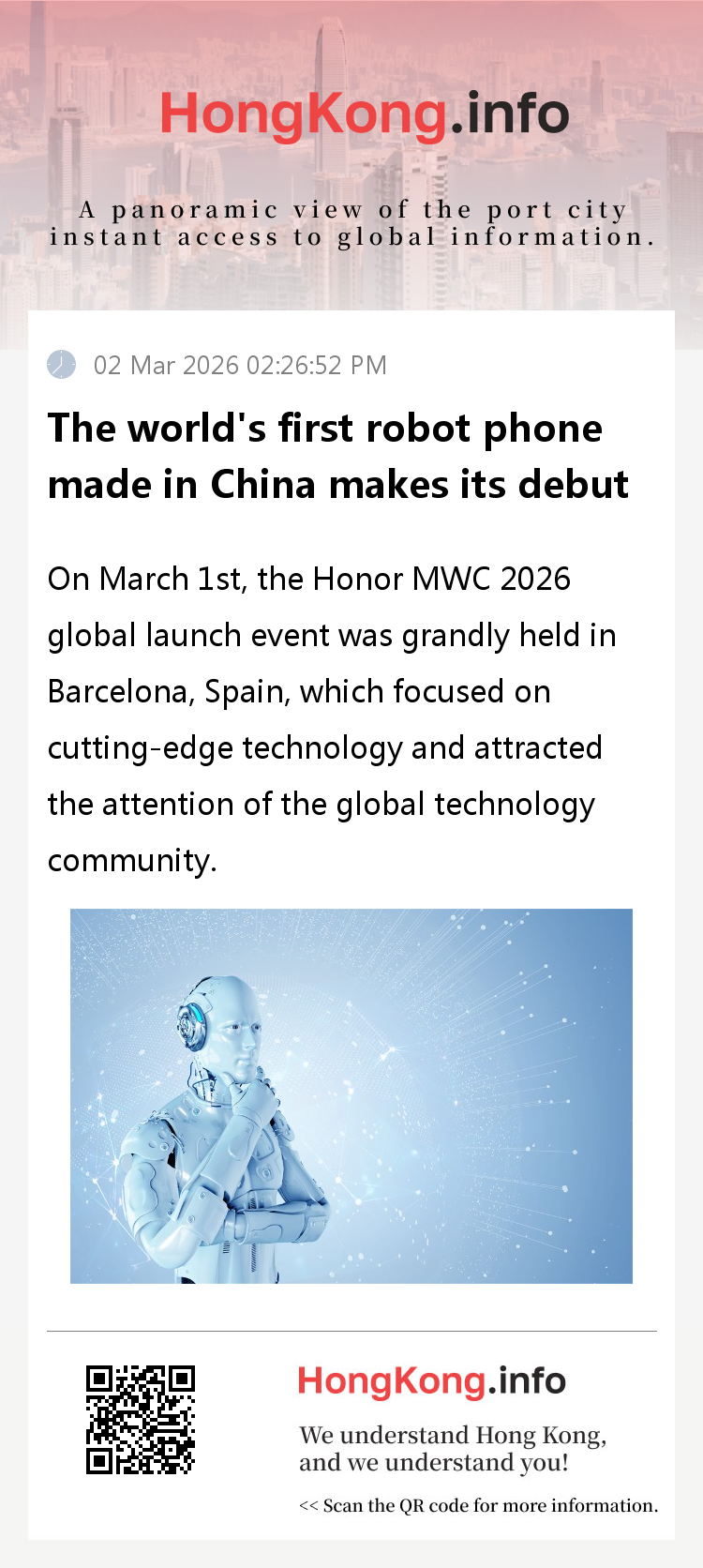 As the top event in the global communication industry, MWC has always been the core stage for global technology companies to showcase cutting-edge achievements and lead industry trends. Honor's decision to hold a global press conference before the opening of MWC undoubtedly demonstrates its determination to layout the global AI terminal ecosystem and seize the high ground of technological innovation. The world's first robot phone, Robot Phone, which made its debut this time, has been defined by Honor as a "constantly evolving new species", completely breaking people's stereotypical perception of traditional phones as "boring black blocks" and achieving disruptive innovation in phone form and function.