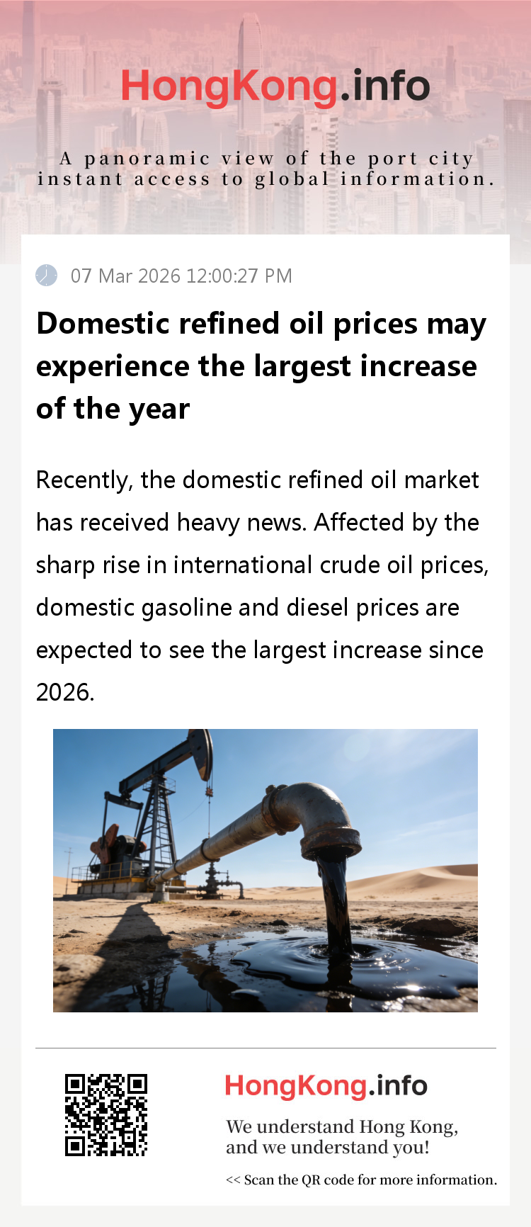 According to the mechanism of domestic refined oil price formation, when the moving average price of crude oil in the international market changes by more than 4% for 22 consecutive working days, the domestic refined oil price can be adjusted accordingly. Based on the latest market calculations, it is expected that domestic gasoline and diesel prices will significantly increase next week, with an adjustment range of 0.37 yuan/liter to 0.44 yuan/liter. This increase will set a record for the largest single adjustment in domestic refined oil prices since the beginning of this year.
