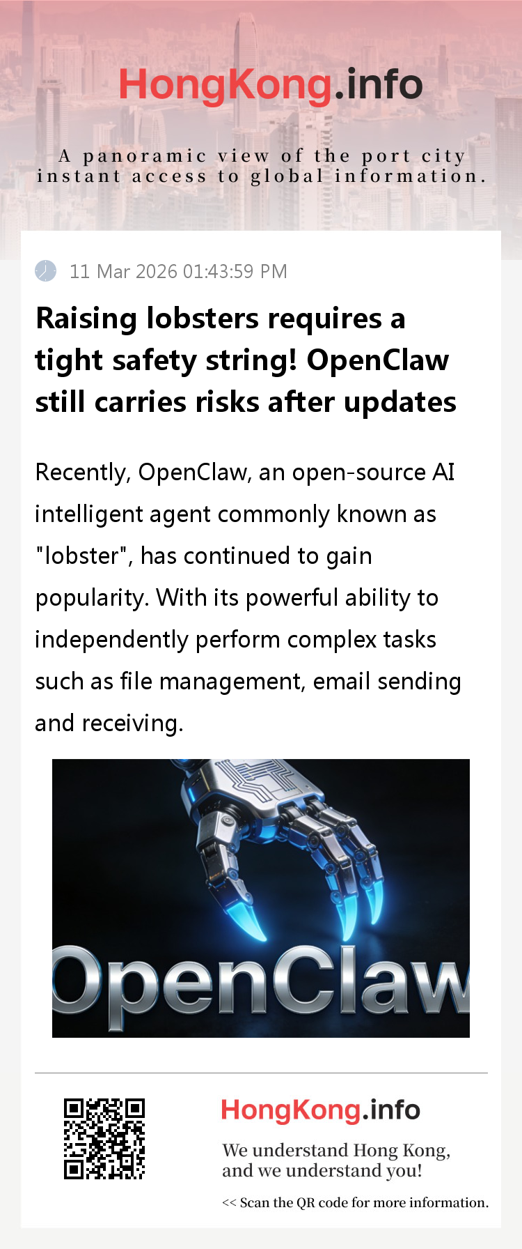 Under the current trend, security risks cannot be ignored - the Ministry of Industry and Information Technology has previously issued a special warning reminder. On the evening of March 10th, experts once again issued a statement reminding that even if the "lobster" intelligent agent has been updated to the latest version, it does not mean that security risks have been completely eliminated. "Lobster farming" needs to always tighten the string of security protection.