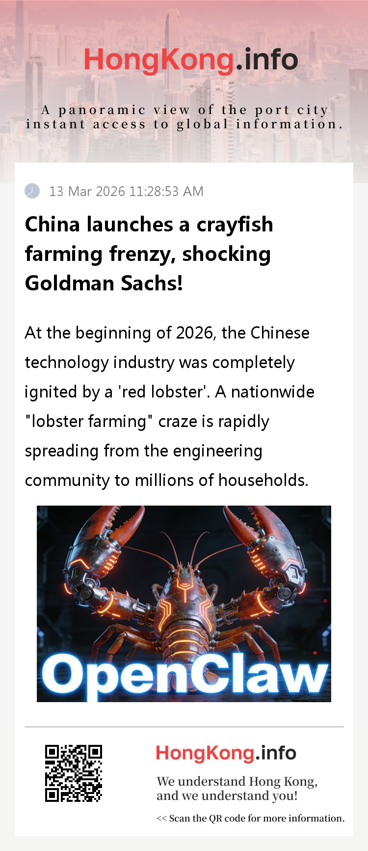 Philip Sun, co head of Asian equity sales at Goldman Sachs, openly expressed his admiration for the speed of AI adoption in China in a memo to clients titled 'Train your own' Lobsters'. He bluntly stated, 'MiniMax has set a personal record for me - I have never worked on a project with an IPO that rose 740% in two months.'. ”