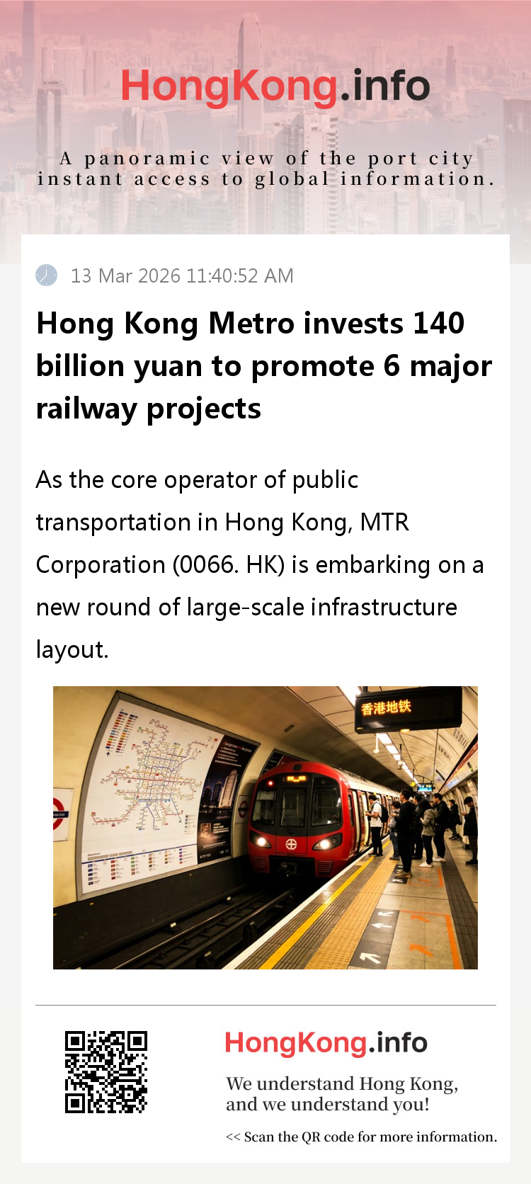 In addition to the Northern Ring Road, railway projects in the Tuen Mun and Lantau Island areas are also being promoted simultaneously, forming a multi-point layout and comprehensive linkage of the railway network upgrade pattern. The advancement of these projects will not only significantly improve regional transportation accessibility and alleviate the transportation pressure on existing routes, but also link with Hong Kong's core development model of "railway plus property", drive urban renewal and industrial upgrading along the route, and inject new momentum into Hong Kong's economic development. MTR Corporation Chairman Ouyang Boquan has stated that railways have always been the efficient and reliable backbone of collective transportation in Hong Kong. These new railway projects will significantly enhance the accessibility of key areas and further deepen cross-border connections between Hong Kong and the mainland.