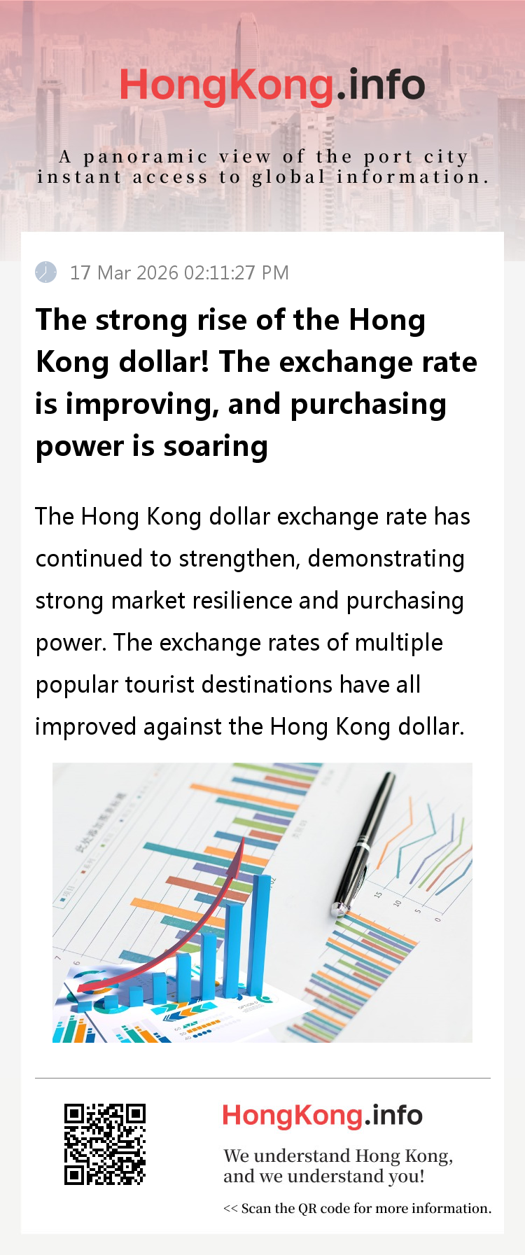 The recent strong performance of the Hong Kong dollar can be clearly reflected in real-time exchange rate data. As of March 17th, the exchange rate of Hong Kong dollar against Japanese yen reached 18.5814, an increase of 0.9036% from the previous trading day, and reached a high of 18.5850, setting a recent high; The exchange rate of Hong Kong dollar against Chinese yuan remains at around 0.8789, with a stable trend, further highlighting its purchasing power advantage. At the same time, Asian currencies such as the Japanese yen and Korean won continue to be under pressure. On March 16th, the Japanese yen fell against the Hong Kong dollar, and the US dollar rose by 0.8797% against the Japanese yen in the past five trading days, indirectly increasing the relative purchasing power of the Hong Kong dollar. Hong Kong citizens can obtain more credit when exchanging these currencies, greatly improving the cost-effectiveness of outbound consumption.