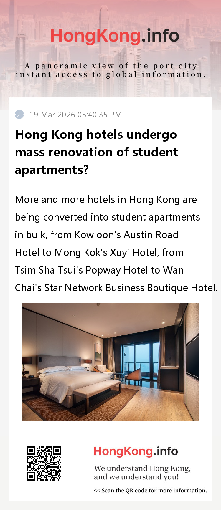 Policy relaxation is an important driving force in clearing obstacles for transformation. In July 2025, Hong Kong launched the "Urban Student Housing Scheme", which includes qualified student apartments for hotel use without the need for additional planning procedures. Most of the land does not require land renewal and land premium, and building restrictions are relaxed to allow for the renovation of supporting facilities, reducing time and cost barriers. The follow-up pilot plan will further simplify the process and stimulate the enthusiasm of capital to enter the market.