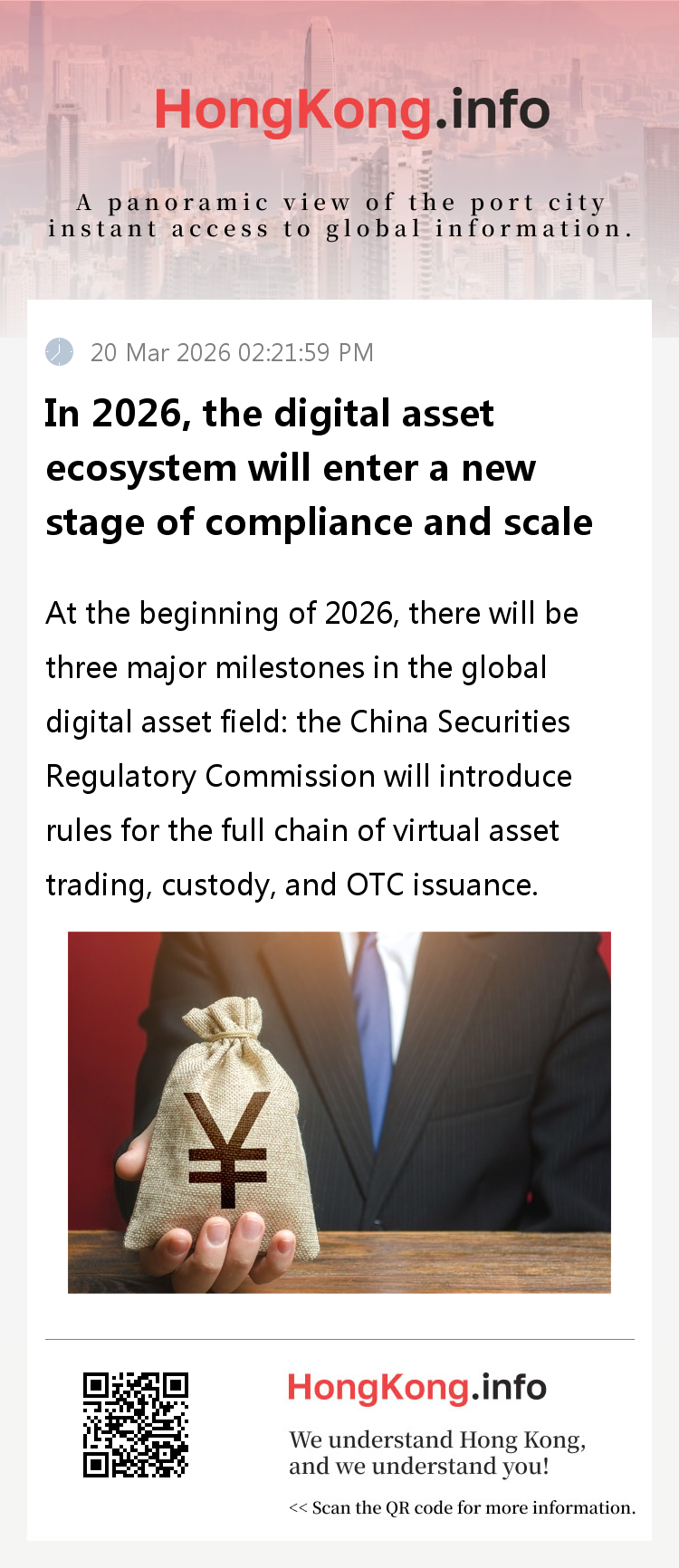 Within the year, the China Securities Regulatory Commission will intensively introduce licensing rules for the three core areas of virtual asset trading, custody, and over-the-counter (OTC) trading, and establish a full chain regulatory system of "licensed operation, penetrating supervision, and risk isolation", clarifying the compliance boundary for industry development.