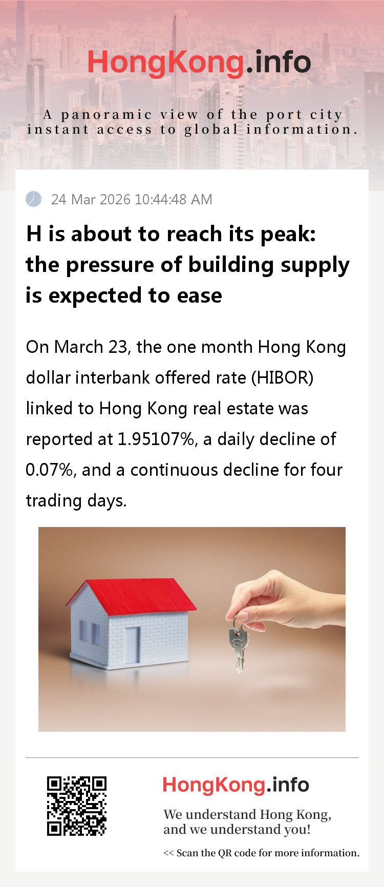 Future outlook: If HIBOR falls below 1.95%, the actual interest rate will be lower than 3.25%, and monthly supply will decrease accordingly.