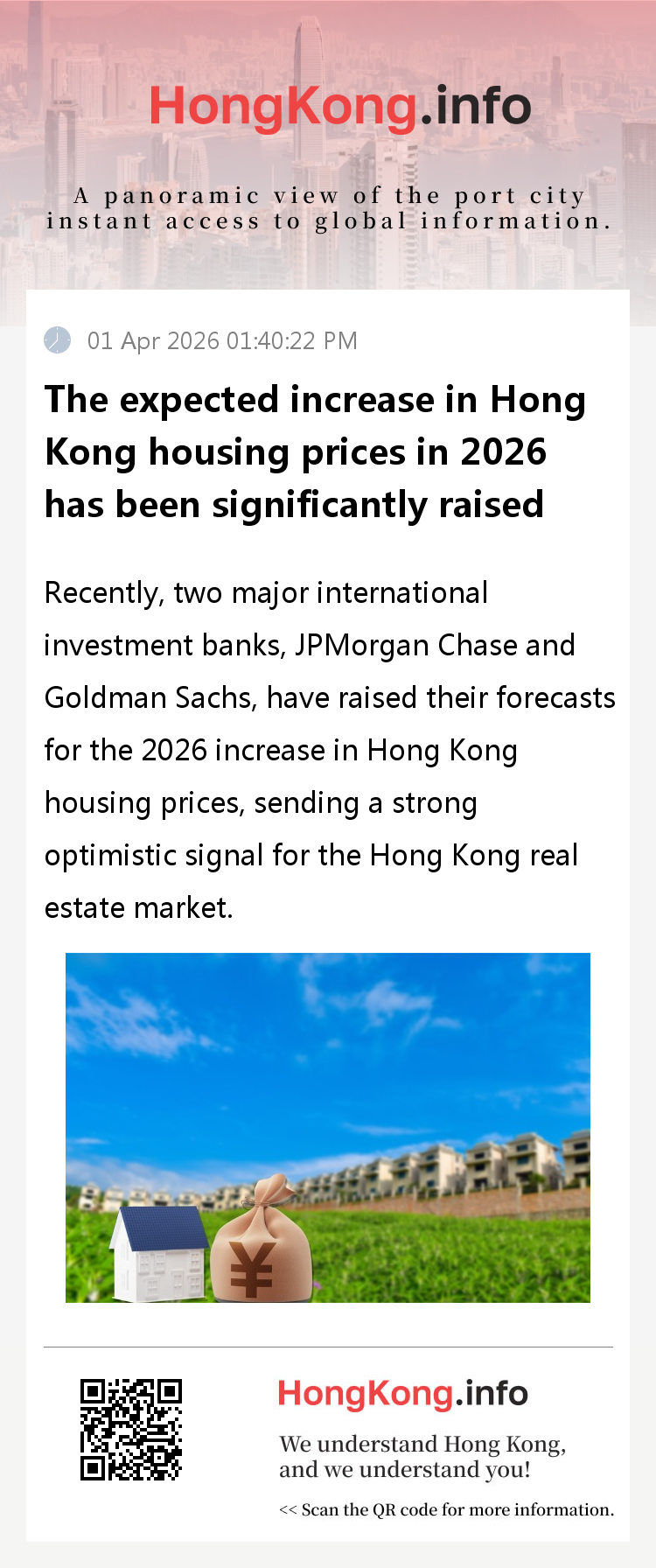 JPMorgan recently released a research report that significantly adjusted its forecast for Hong Kong housing price increases in 2026, from the original 5% -7% to 10% -15%. The increase is significant, and it is expected that Hong Kong housing prices will continue to steadily rise by about 5% in 2027, demonstrating firm confidence in the long-term trend of the Hong Kong property market.