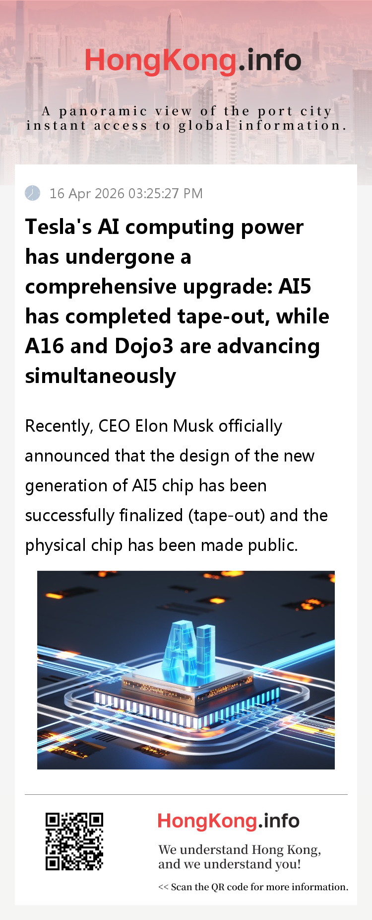 Following the successful tape-out of AI5, Tesla has restarted the Dojo3 supercomputer project. The project, which was suspended in August 2025, is now being revived leveraging the AI5 and A16 chip architectures to build a "chip-supercomputer" collaborative ecosystem. Dojo3 adopts a modular design, with a single motherboard capable of integrating 512 AI5/A16 chips, significantly enhancing computing density. It is specifically designed for FSD large model training, robot algorithm optimization, and massive driving data processing.