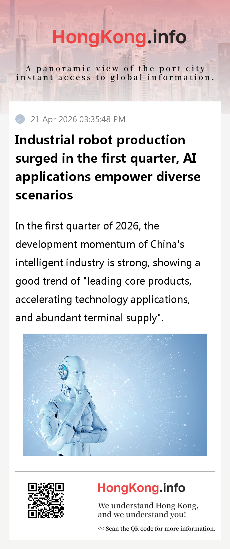 In the first quarter, the industrial robot industry ushered in a "good start", with a significant year-on-year increase of 33.2% in production, maintaining a high growth rate, demonstrating the strong development resilience of China's industrial robot industry. As the core equipment for the intelligent transformation of manufacturing industry, the rapid growth of industrial robot production is driven by the continuous release of downstream manufacturing automation demand and the continuous breakthroughs in core technologies.